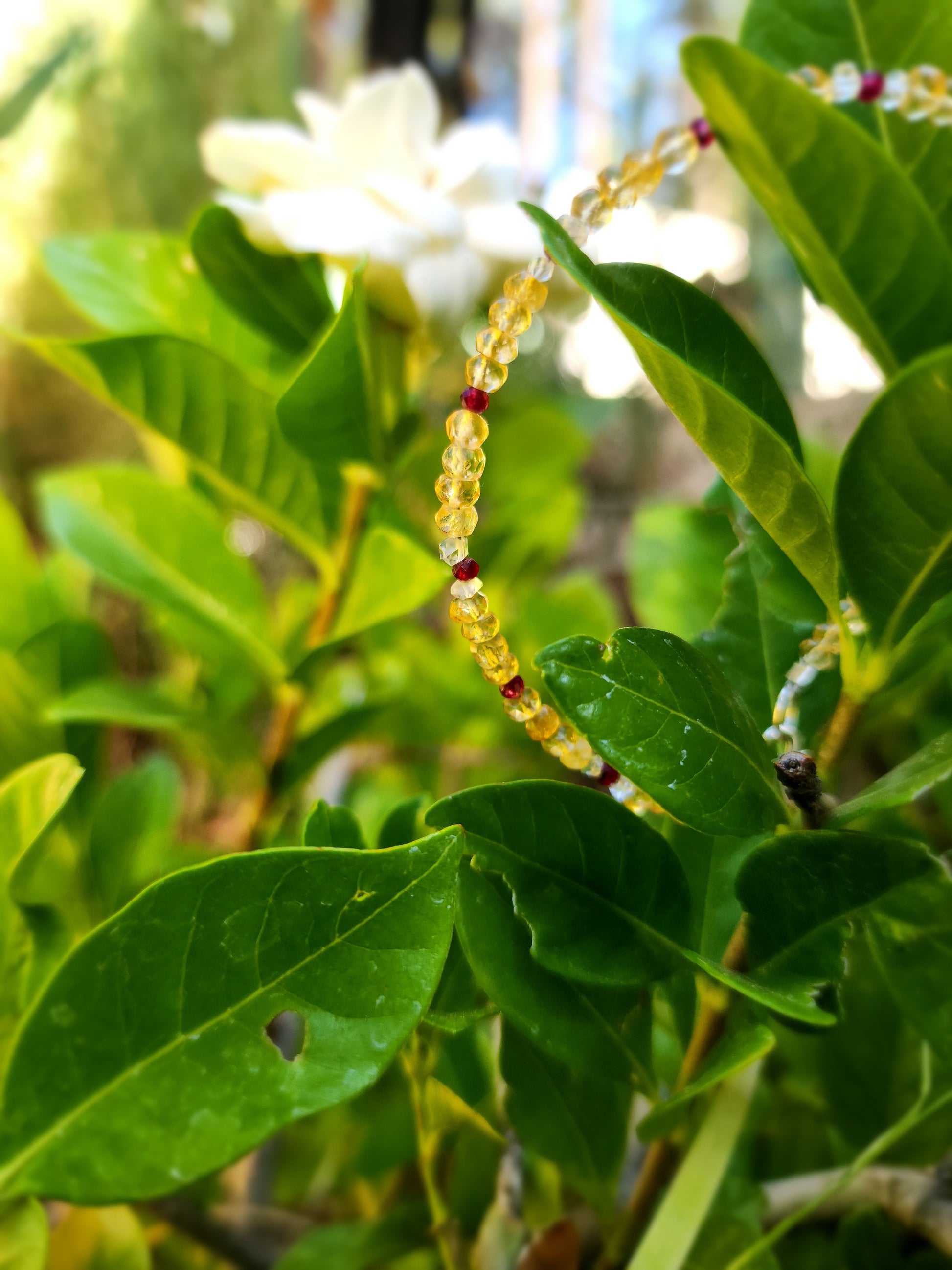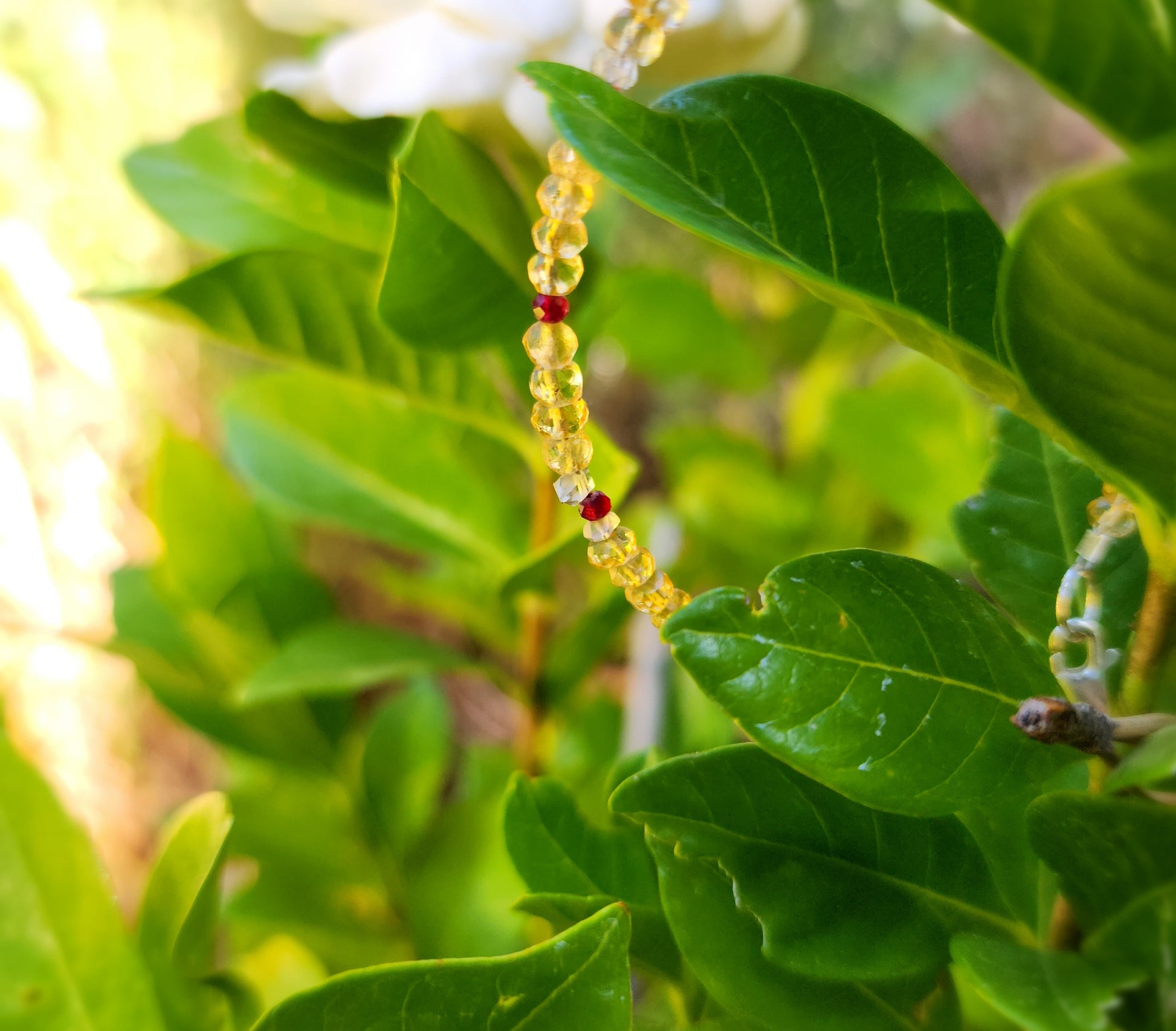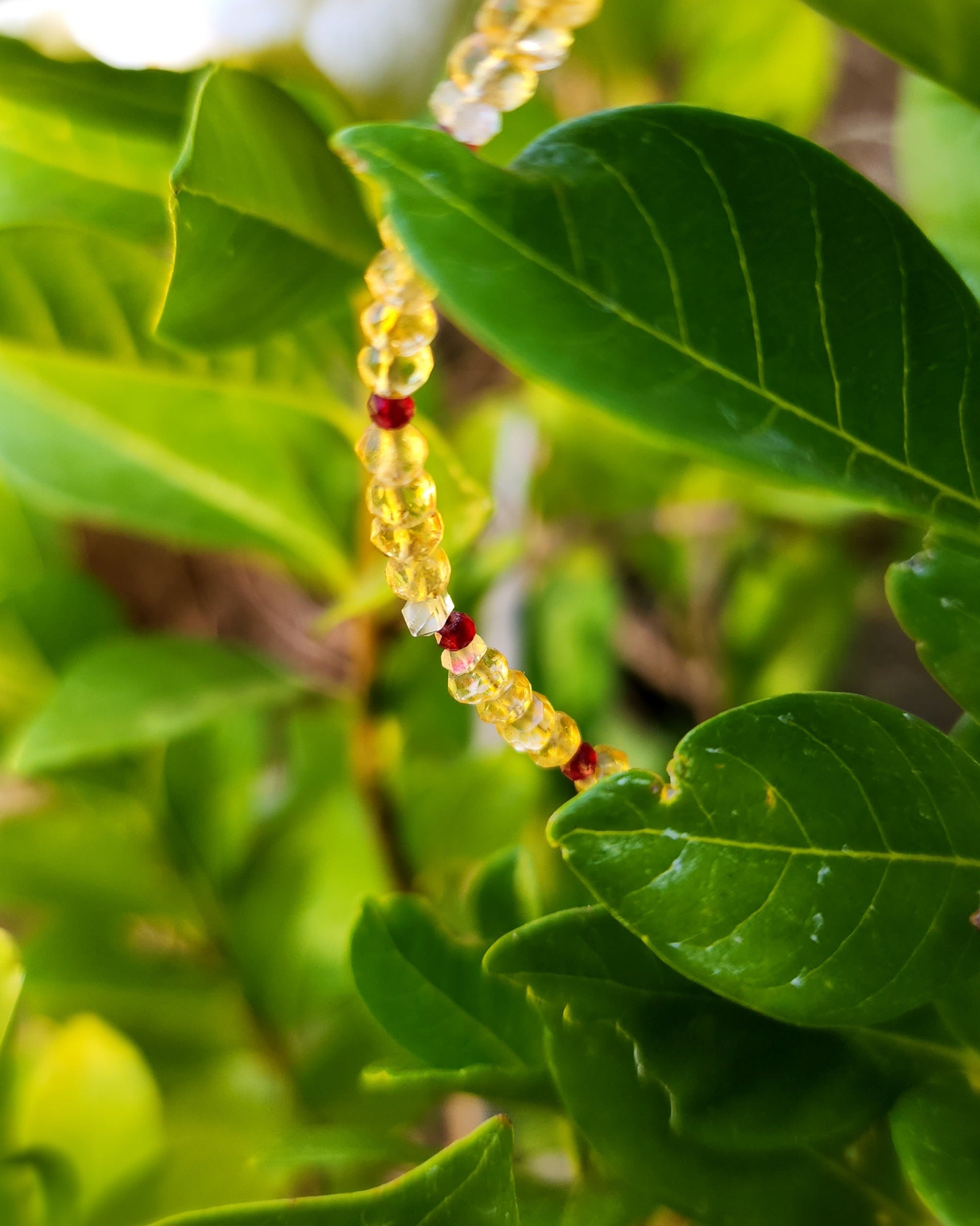Handcrafted with autumn flowing in, this elegant bracelet brings together the vibrant energy of Ruby, the clarity of Herkimer Diamond, and the warm, joyful vibes of Citrine. Just in time for the fall season, though perfect year round.